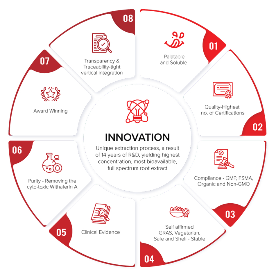 La producción de KSM-66 cuenta con una estrecha integración vertical que garantiza una alta calidad y un precio competitivo. El fabricante de KSM-66 es el único productor de ashwagandha del mundo con sus propias granjas, instalaciones de producción, laboratorios de pruebas, centro de investigación y distribución.