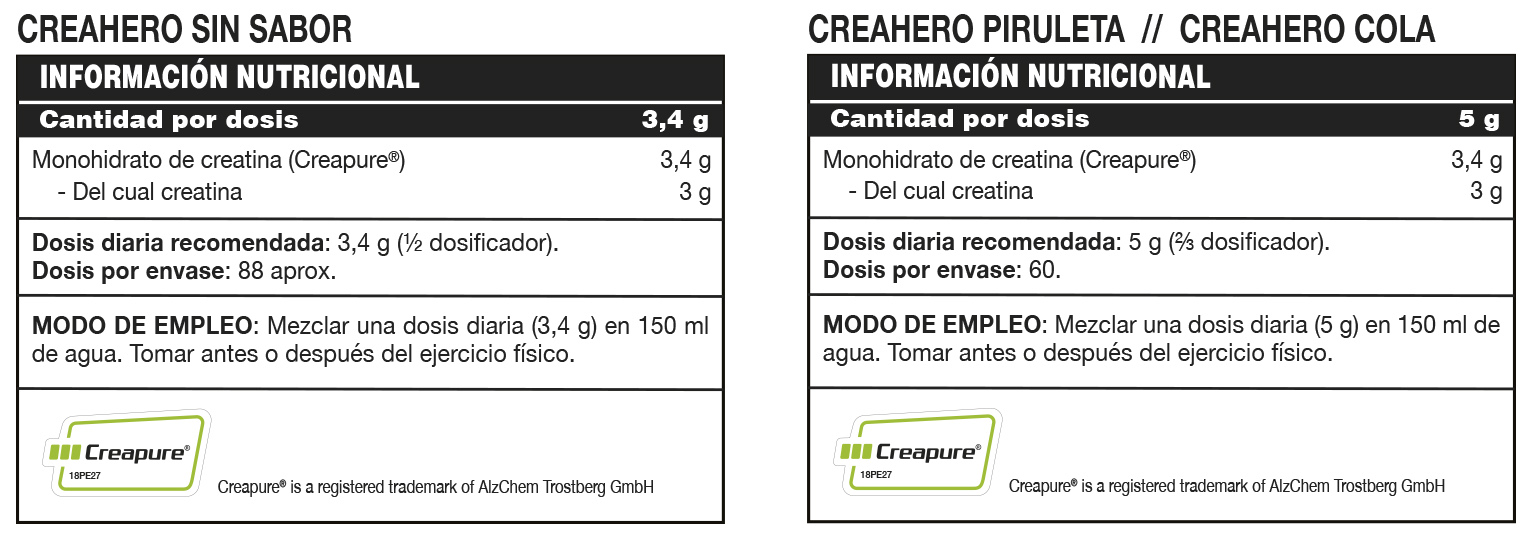ADVERTENCIAS: Mantener en lugar fresco y seco, el calor y el sol pueden dañar el envase. Mantener fuera del alcance de los niños más pequeños. No superar la dosis diaria expresamente recomendada. Los complementos alimenticios no deben utilizarse como sustituto de una dieta equilibrada. No debe ser consumido por mujeres embarazadas. Producto destinado solo para adultos que realicen ejercicio de alta intensidad. La creatina mejora el rendimiento físico en series sucesivas de ejercicios breves de alta intensidad. El efecto beneficioso se obtiene con una ingesta diaria de 3 g de creatina. Es importante mantener una dieta variada y equilibrada y un estilo de vida saludable.
