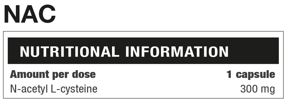 INGREDIENTS: N-acetyl L-cysteine, capsule [glazing agent (hydroxypropyl- methyl-cellulose)], maltodextrin, anti-caking agents (magnesium salts of fatty acids, silicon dioxide).