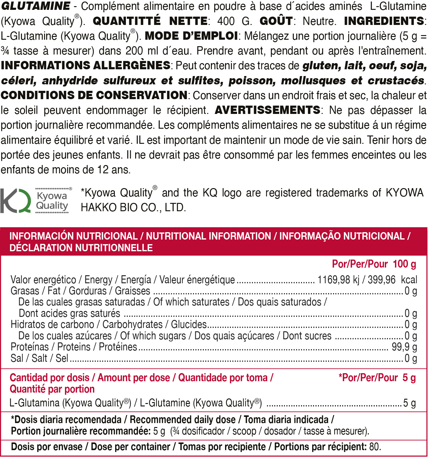 GLUTAMINE de HERO TECH NUTRITION avec une teneur en Glutamine Kyowa Quality® de haute qualité à 100%.