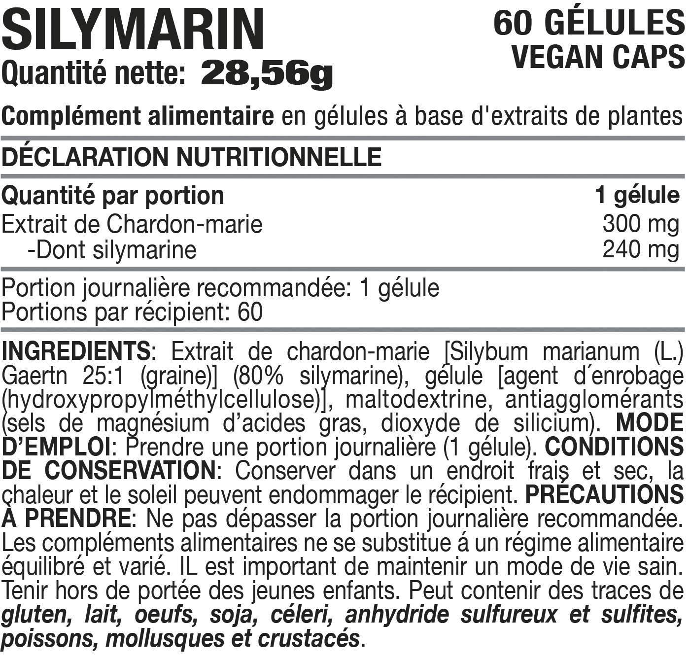 SILYMARIN de Hero Tech Nutrition contient un extrait de chardon marie obtenu à partir des graines de la plante avec une teneur en silymarine de 80%. Le chardon marie contient au moins sept flavoligands et le flavonoïde taxifoline. L'activité hépatoprotectrice et antioxydante de la silymarine est due à sa capacité à inhiber les radicaux libres produits par le métabolisme des substances toxiques (drogues, alcool, etc.).
